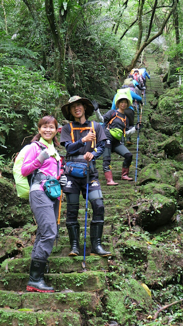 | 瓜寮坑溪攔沙壩合照~(照片由陸廣勝拍攝分享) ※ 經常有人問:登山健行穿登山鞋好?還是穿雨鞋好?這張照片是最好的答案!  |